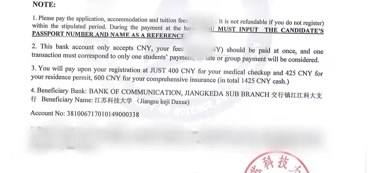 注:费用(寝具费、体检费、综合保险费、居留许可费)在报名时以人民币支付)