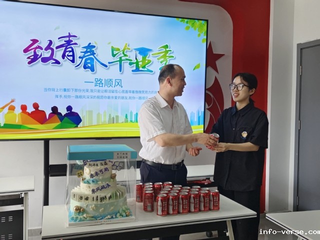 作为特别送别礼,叶校长为每位毕业生赠送印有“鹏程万里 扬帆起航”字样的定制可乐。欢声笑语中,浓浓的不舍与对未来的美好憧憬交织在一起。