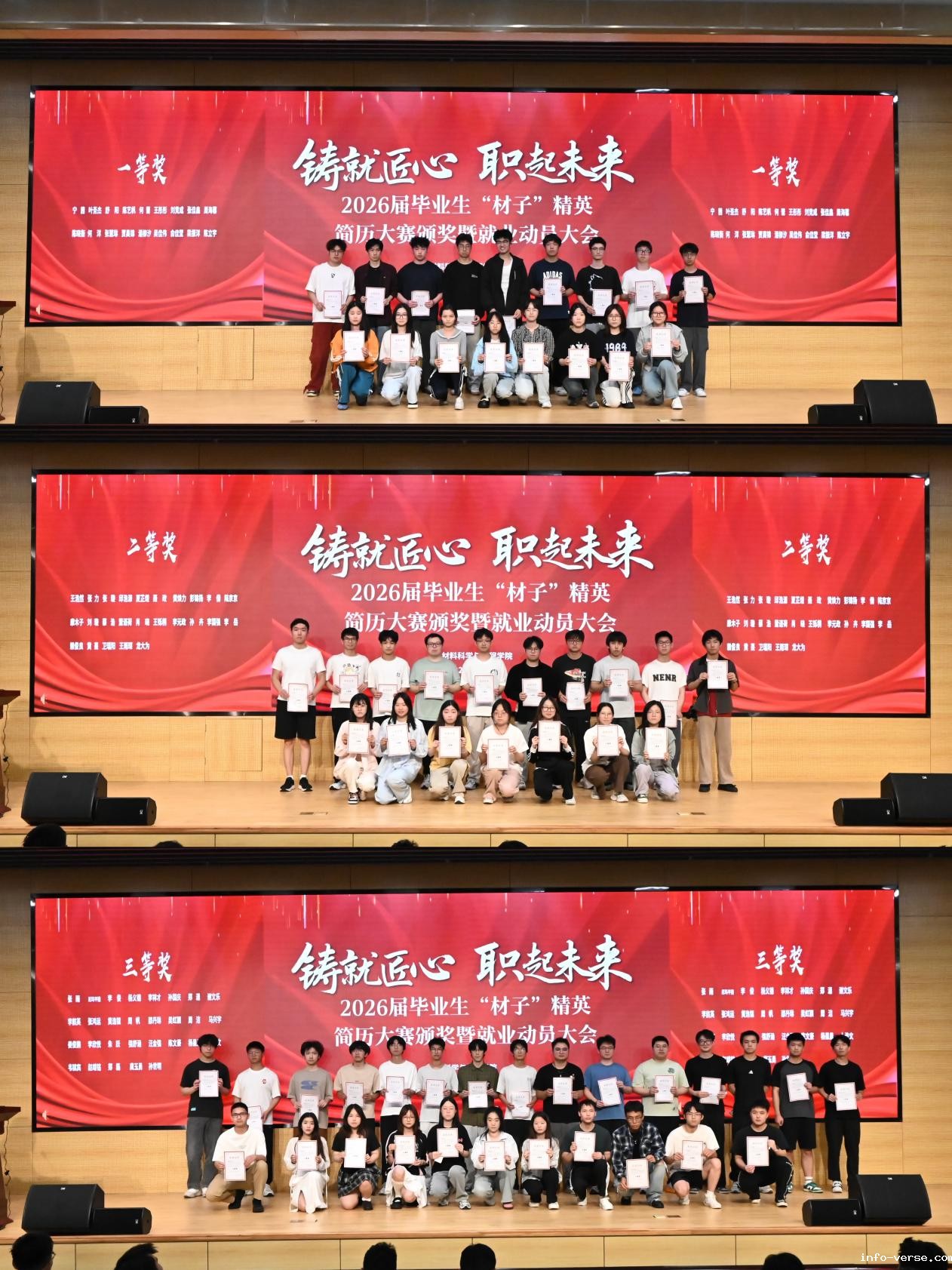 大会伊始,杨海涛副书记宣读了首届“材子” 精英简历大赛获奖名单,并为获奖同学颁发荣誉证书。此次大赛吸引了近600名学生报名参赛,经过简历初评、互评、终评等环节,75名学生脱颖而出。获奖作品以“突出专业特色、强化实践能力、展现职业素养”为亮点,充分体现了材料学子对求职技能的扎实掌握。杨海涛在致辞中强调,简历是求职者的 “第一张名片”,希望同学们以此次比赛为契机,不断打磨求职材料,将工匠精神融入职业规划,为未来发展筑牢根基。