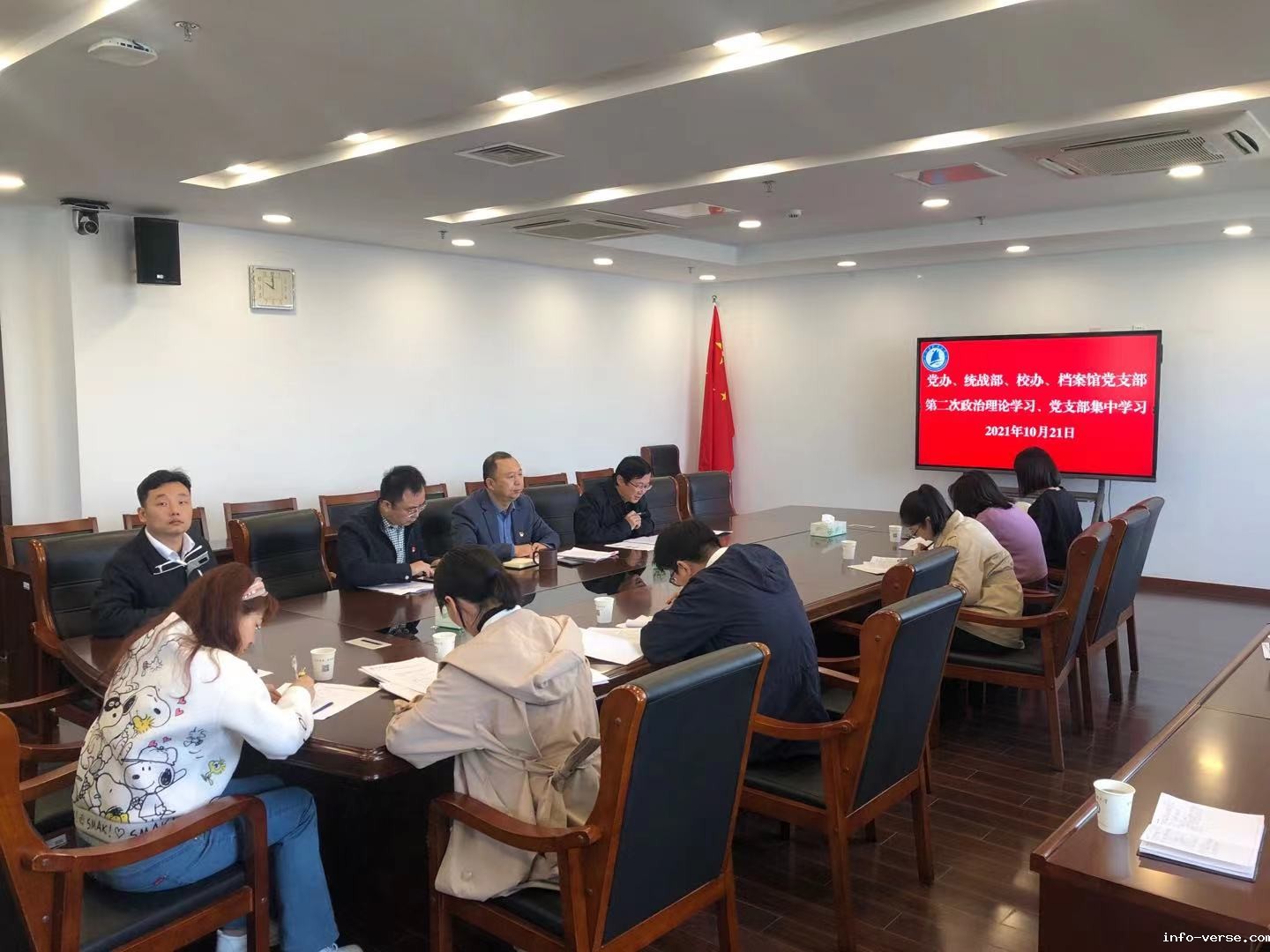 党办、统战部、校办、档案馆党支部围绕学习内容开展多种形式的交流讨论。张羽老师提出,基层党组织的组织力就是战斗力,学校高水平大学建设重任与我们息息相关,每位党员要提高政治站位,充分发挥基层党组织战斗堡垒作用。