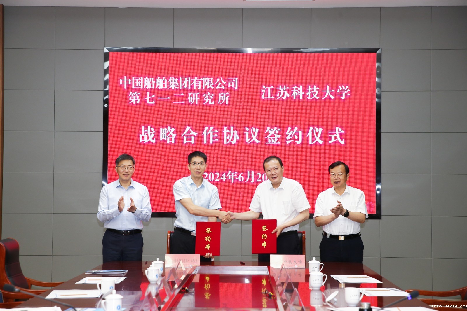 6月20日下午,中国船舶集团有限公司第七一二研究所所长桂文彬一行来校交流,并在行政楼200号会议室举行双方战略合作协议签约仪式。校党委书记周南平出席,校党委副书记汤建主持。