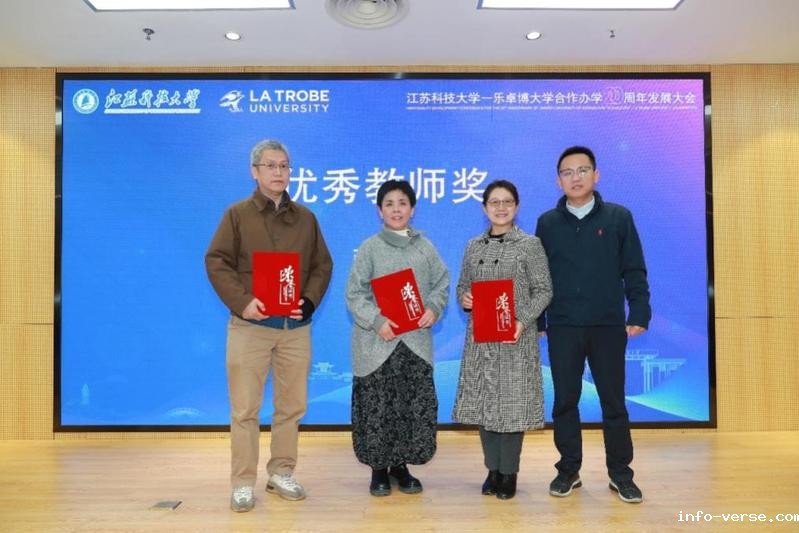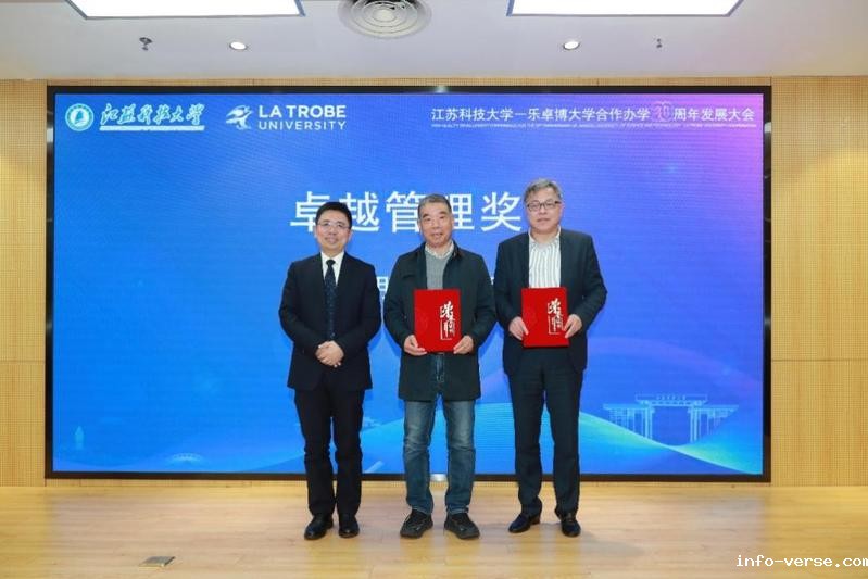 During the award ceremony, Ge Shilun, former Secretary of CPC JUST Committee, and Amalia Di Iorio, Vice Chancellor of LTU, were awarded the Special Contribution Award. Zhang Guangming, former Director of the International Office and Secretary of CPC Committee of the School of Economics and Management, and Liu Jun, CEO of Shanghai Yucui Education Consulting Co., Ltd., were awarded the Management Excellence Award. Three teachers from the School of Economics and Management, Yao Huili, Zhang Xuejun and Dong Liang, were awarded the Outstanding Teacher Award. Ru Yixian, Deputy Director of Department of International Cooperation and Exchanges of the Jiangsu Education Department, Lu Lilin, Director of the Foreign Affairs Office of Zhenjiang City, and Wang Nianxin, Dean of the School of Economics and Management, presented the awards to the winners respectively.