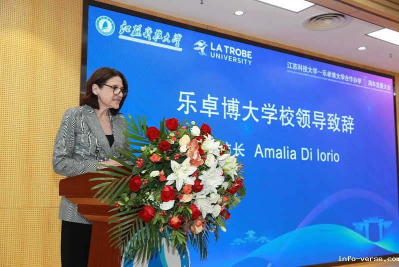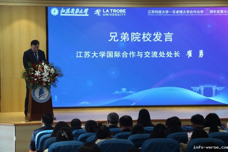 On November 28th, the 20th Anniversary Development Conference of the JUST—La Trobe University (LTU) Cooperation was held at JUST. Ru Yixian, Deputy Director of Division of International Cooperation and Exchanges of the Jiangsu Education Department, Lu Lilin, Director of the Foreign Affairs Office of Zhenjiang City, Amalia Di Iorio, Vice Chancellor of LTU, Zhou Honggen, Member of the Standing Committee of CPC JUST Committee and Vice President of JUST, and Cui Yong, Director of the International Office of JSU, attended the conference. More than 200 leaders, faculty and students from various departments and schools, including the Student Affairs Office, Academic Affairs Office, International Office, School of Economics and Management and other departments, attended the conference. The conference was presided over by Wang Yuxin, Director of the International Office.
