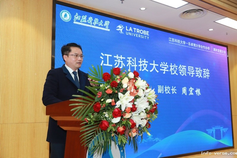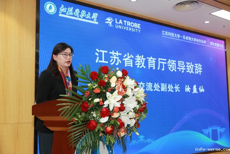 Ru Yixian, Deputy Director of the Division of International Cooperation and Exchanges of the Jiangsu Education Department, stated in her speech that over the past 20 years, the Sino-Australian Cooperative Education programs of JUST has achieved remarkable success. She encouraged JUST to seize the opportunity to further deepen cooperation and exchanges with Australian universities, continuously expand the scope of cooperation, enrich the connotation of cooperation, and achieve more fruitful results in curriculum co-construction, scientific research cooperation, and faculty-student exchanges. She stated that efforts should be made to strengthen exchanges and cooperation with universities of other countries and regions worldwide, introduce more high-quality educational resources, and enable JUST to shine on the broad stage of international education.