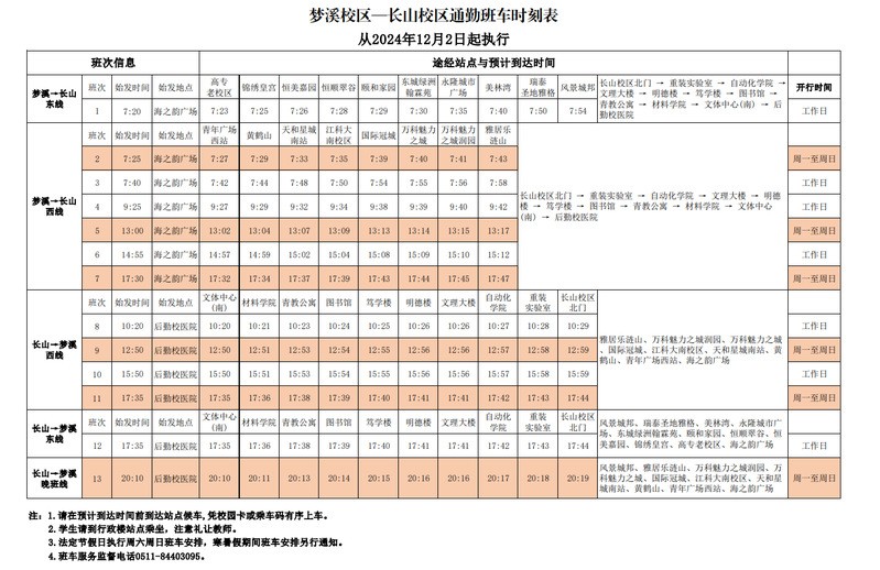 注意:本次调整仅涉及校内班车线路及站点,校外站点保持不变。