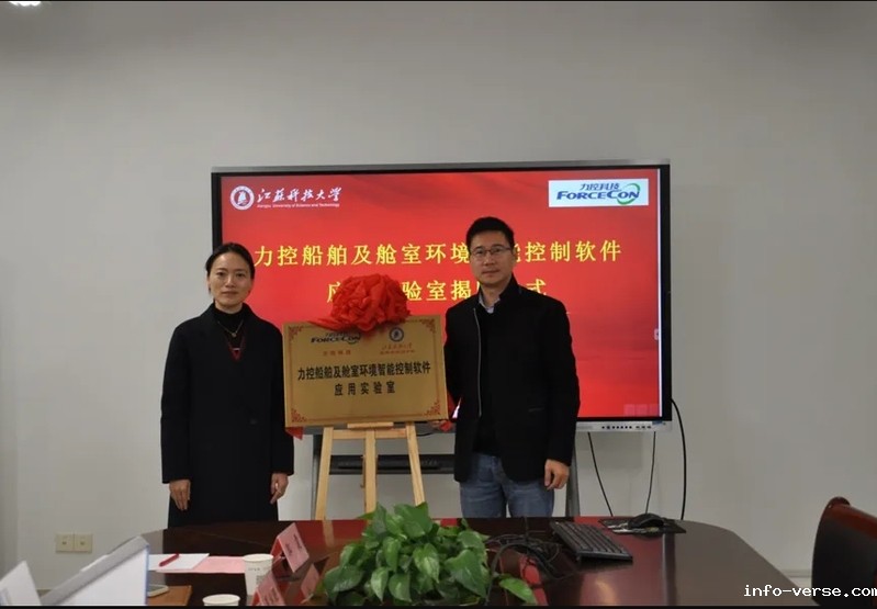 仪式结束后,戴楚怡书记与王飞总经理共同为力控船舶及舱室环境智能控制软件应用共建实验室揭牌,预示着双方在科研和人才培养方面的合作正式开启。
