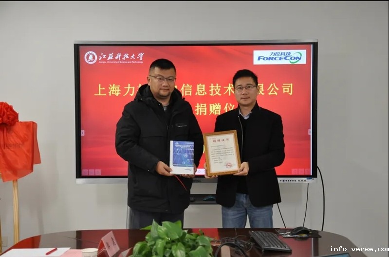 李洋副处长介绍了学校基金会的相关情况,并对力控科技公司的产品捐赠表示感谢。双方举行了产品捐赠仪式,李洋副处长代表学校为王飞总经理颁发了捐赠证书,以示感谢。