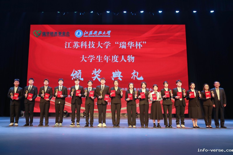 4月10日下午,竞技宝登录入口2024年度“瑞华杯”大学生年度人物颁奖典礼在长山校区举行。党委常委、副校长胡爱祥,江苏省瑞华慈善基金会秘书长张颂杰等出席活动,800余名师生代表见证25名优秀学子获颁年度人物和提名奖。