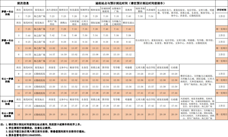 梦溪校区—长山校区通勤班车时刻表-2024-02-21