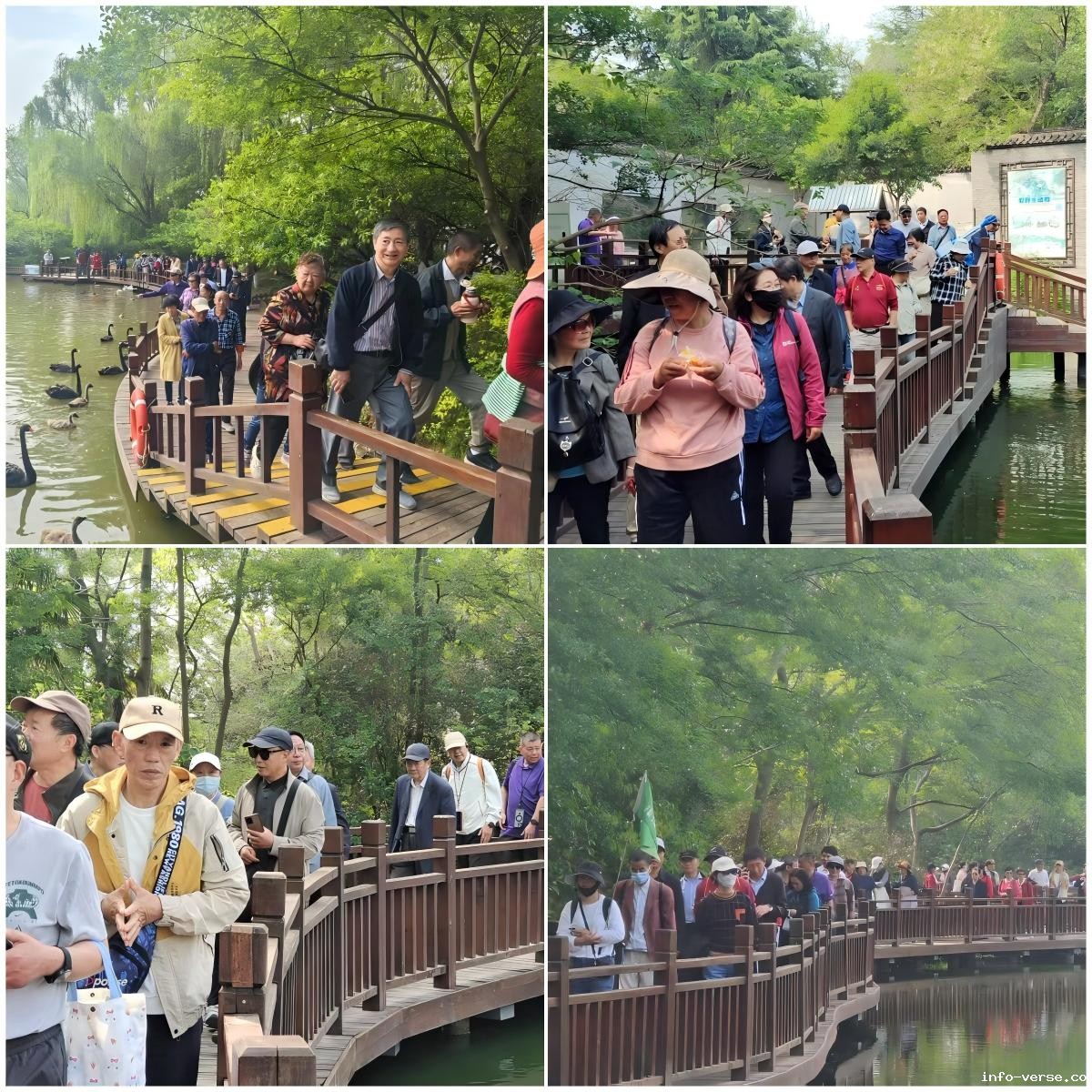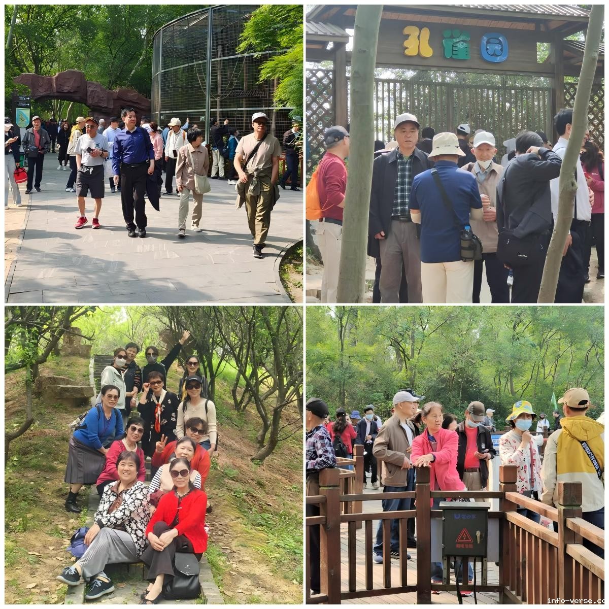 当天上午,近200名退休党员和教工抵达扬州茱萸湾风景区。此时的茱萸湾春意正浓,绿柳垂丝,芍药盛放,湖面碧波荡漾,动物生态园内天鹅嬉戏、熊猫慵懒,一派生机勃勃的景象。老同志们三五结伴,漫步在林荫步道上,驻足观赏花卉,用相机记录下这盎然的春色。老友重逢,大家饶有兴致地回忆起往昔参观的趣事,感慨生态环境的改善与城市的快速发展,畅谈晚年的幸福生活,分享养生心得,整个活动充满了温馨与融洽的氛围。