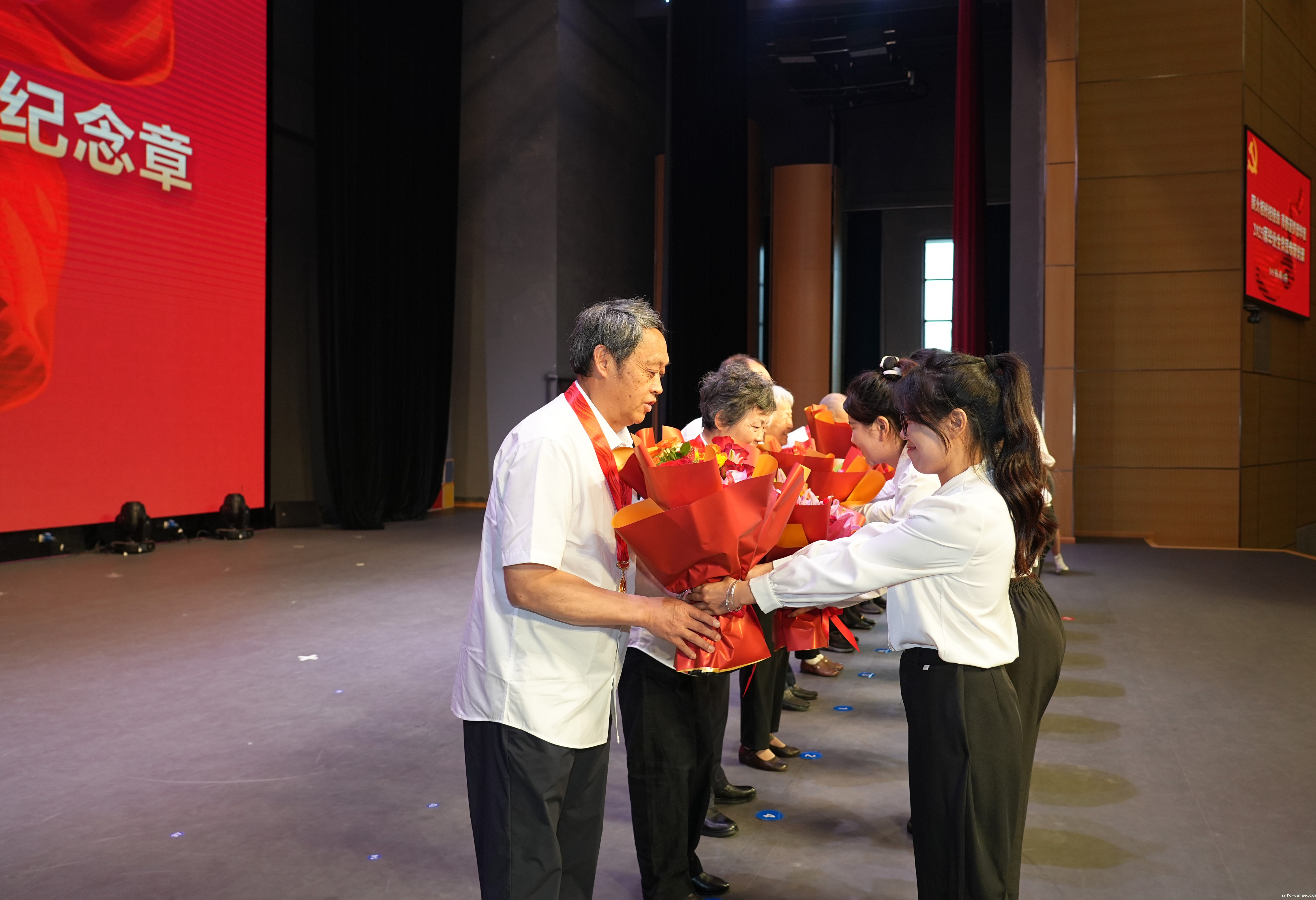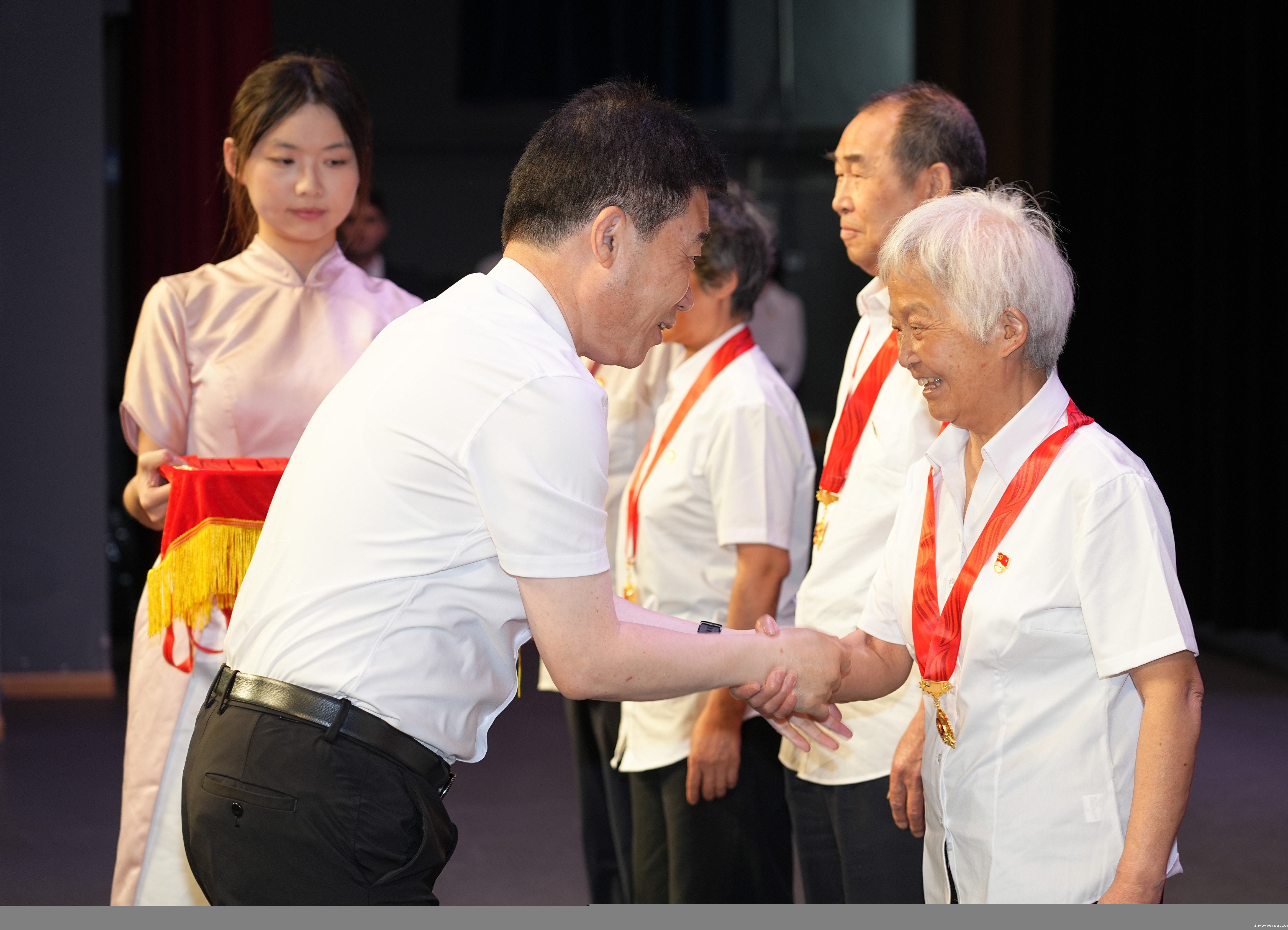 活动在庄严雄壮的国歌声中拉开帷幕。校党委书记杨建新为老党员代表颁发“光荣在党50年”纪念章。当老党员接过纪念章,他们脸上洋溢着自豪和对党的深情。与此同时,毕业生党员向老党员献上鲜花,传递着年轻一代对老党员的敬意与传承。