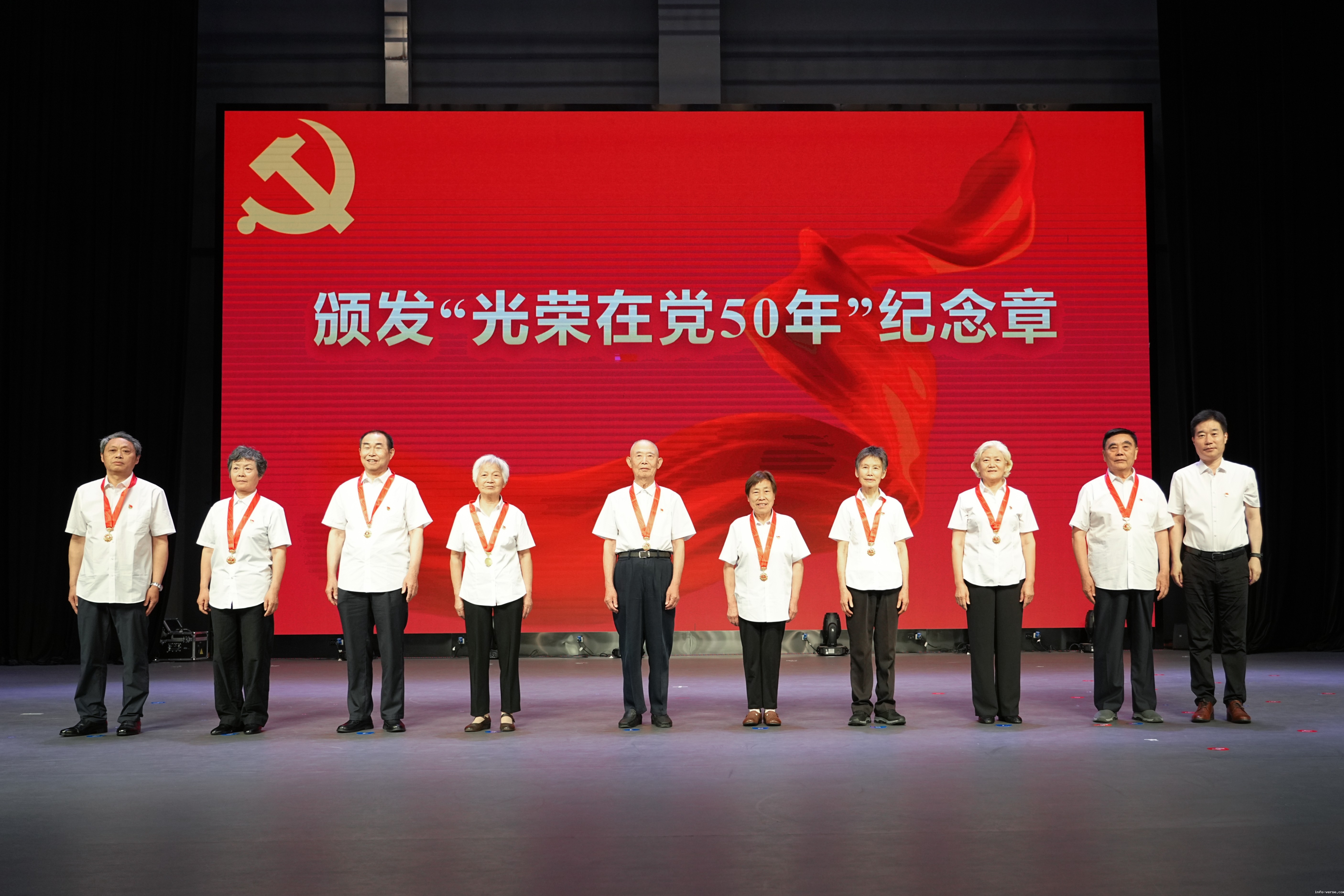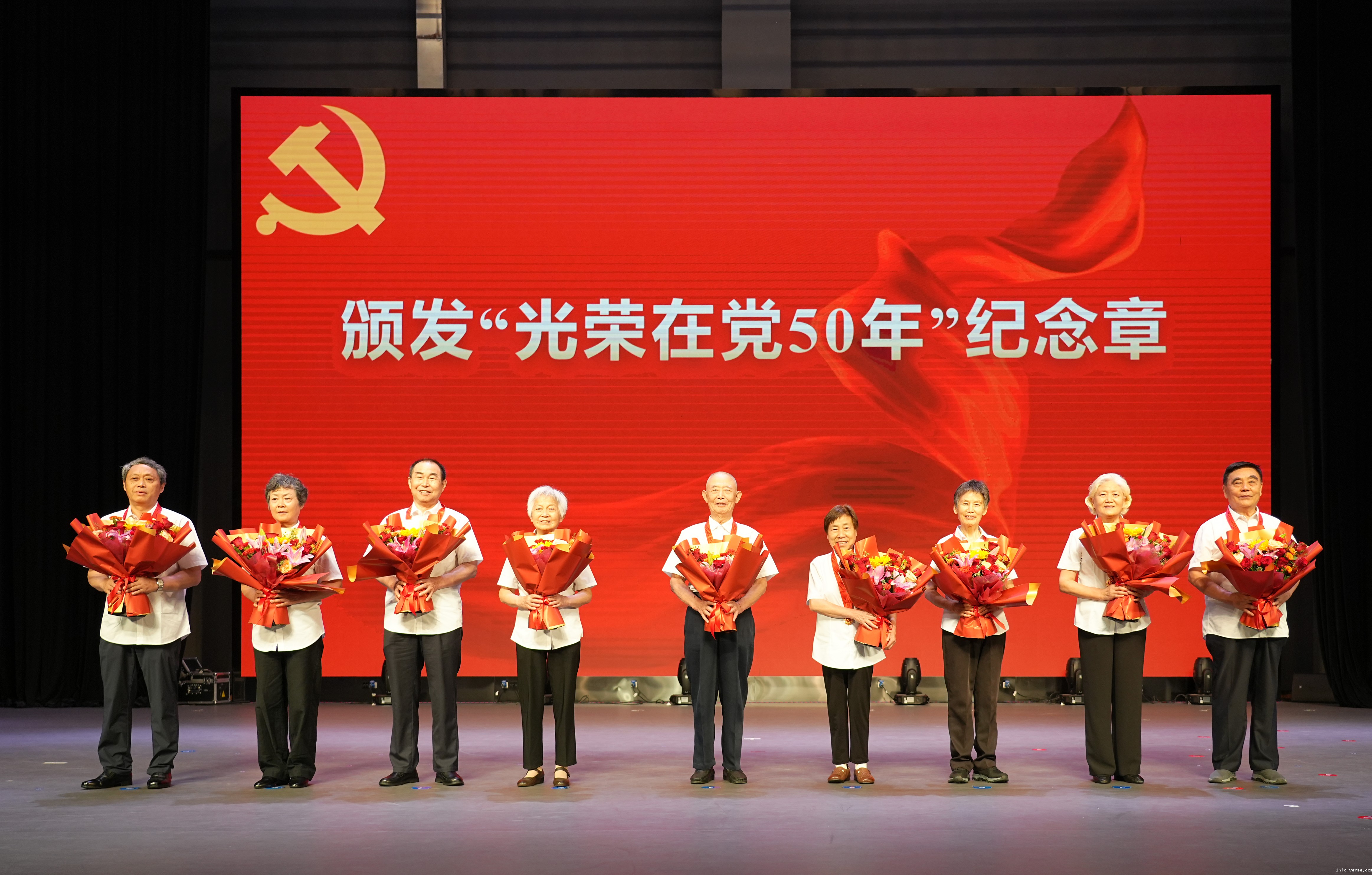 6月12日下午,长山校区船苑剧场内气氛热烈而庄重,“光荣在党50年”纪念章颁发仪式暨专题党课在此举行。