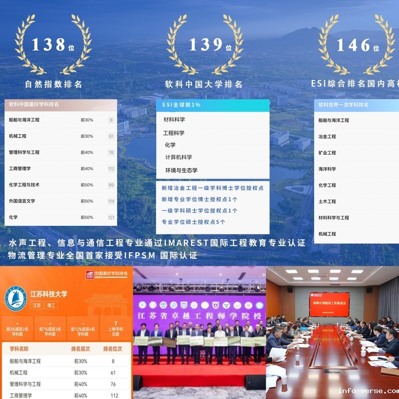 坚持学科建设龙头地位,全力推进学科攀峰工程,学科水平和综合实力显著提升。2024年,新增冶金工程一级学科博士学位授权点,填补江苏高校该学科博士点空白;新增专业学位博士授权点1个,实现专业学位博士点零的突破。新增一级学科硕士学位授权点1个,专业学位硕士授权点5个,人才培养口径进一步拓宽。7个学科入选“软科中国最好学科”榜单,其中船舶与海洋工程学科位居全国第8。获批江苏省卓越工程师学院,新增“计算机科学”与“环境科学与生态学”2个学科进入ESI全球排名前1%,国际学术影响力持续提升。