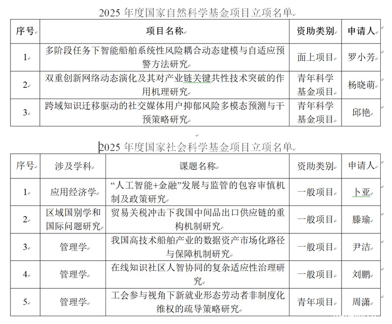 近日,国家自然科学基金委员会和全国哲学社会科学工作办公室相继公布了2025年度的评审结果,经济管理学院共...