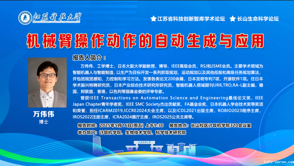 2025年5月16日上午,应计算学院束鑫教授、生物技术学院赵卫国研究员邀请,日本大阪大学副教授万伟伟做客竞技宝登录入口海韵智算讲坛,并为所院师生作了特邀学术报告《Challenges and Solutions of Motion Planning in Real-World Deployment》。