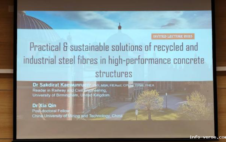 应土木工程与建筑学院邀请,2025年4月2日下午,英国伯明翰大学Sakdirat Kaewunruen教授到访我院,在土建楼302会议中心为我院师生作了题为“Practical & sustainable solutions of recycled and industrial steel fibers in high-performance concrete structures”的学术讲座。土建学院教师和研究生参加了讲座交流,讲座由土建学院院长潘志宏教授主持。