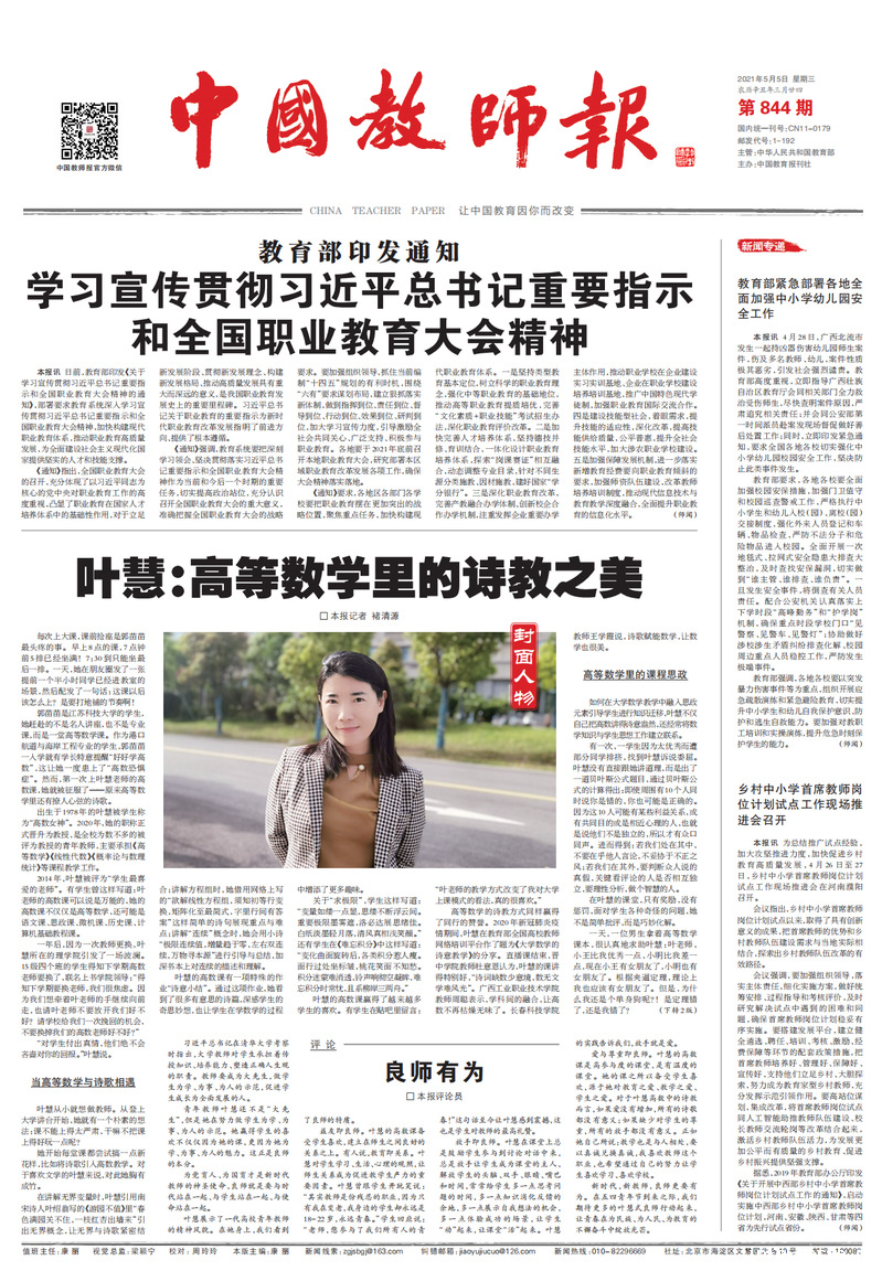 叶慧展示了一代高校青年教师的精神风貌。在她身上,我们看到了良师的特质。