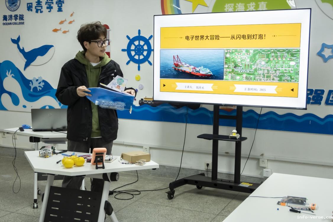 据悉,海洋学院“贝壳学堂”以大学生为主讲人,通过启发式教学设计,实现对青少年的科普知识宣讲与科创意识培养。学院同时设置“贝壳实验室”,以科创达人为宿舍主理人,打造数智化学生社区。学院将持续推进科创共享式“一站式”学生社区建设,以寓教于乐的方式,为在校大学生、教职工子女打造丰富多彩的科学课堂,把宿舍变实验室,把实验室变儿童科普乐园。
