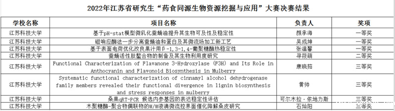 8月13日,2022年江苏省研究生“药食同源生物资源挖掘与应用”科研创新实践大赛落下帷幕,我校研究生获得一等奖3项,二等奖1项,三等奖4项,王俊、游帅老师获得优秀指导教师,学校获得“优秀组织奖”。