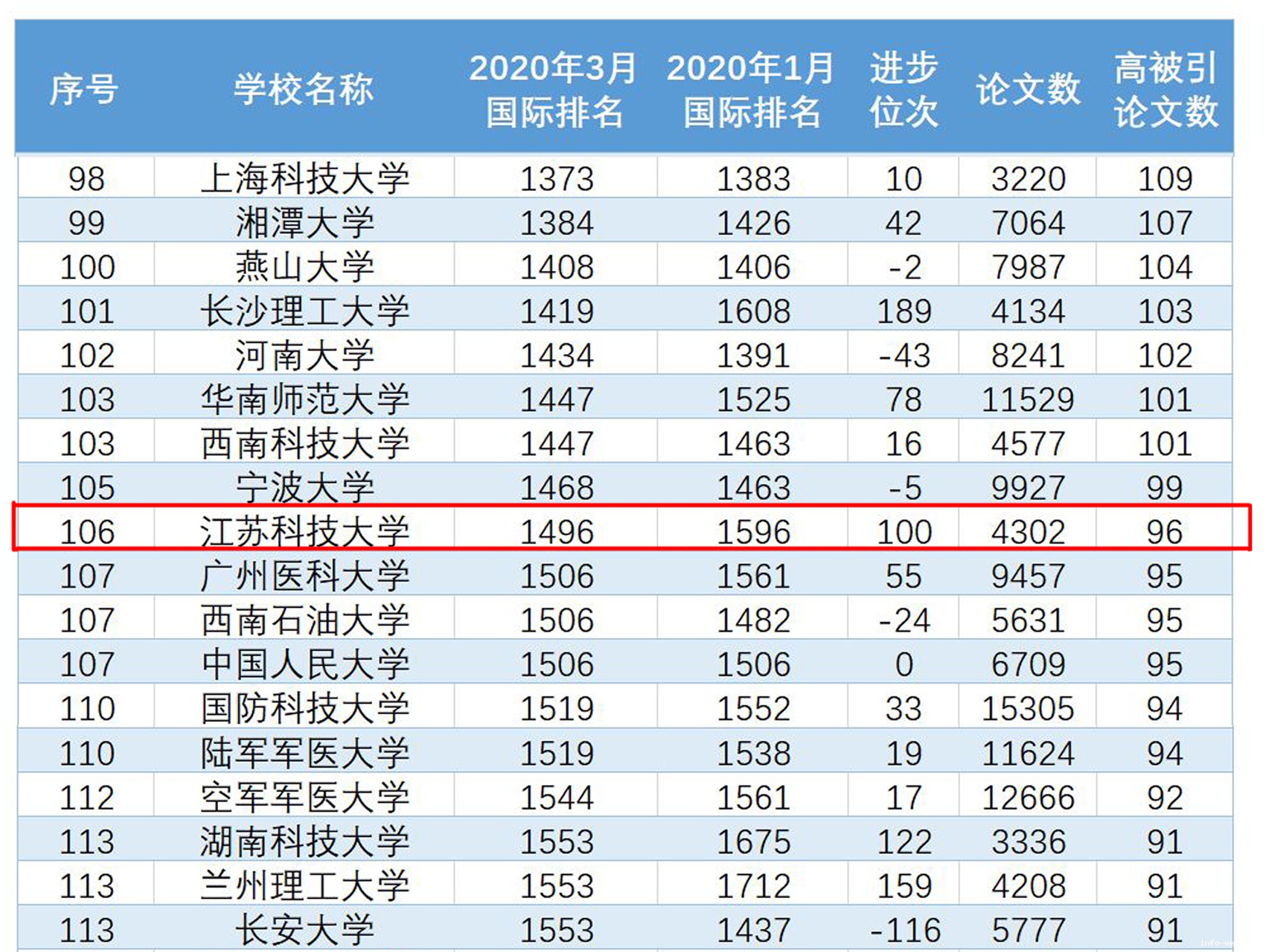 根据ESI数据库的界定,高被引论文指近十年来被引频次排在前1%的论文,每两个月更新一次。论文的被引数量,在一定程度上反映了论文的质量或影响力。世界公认的四大权威世界大学排名,ARWU世界大学学术排名、USNEWS世界大学排名、QS世界大学排名和泰晤士高等教育世界大学排名均把论文引用率作为高校排名的主要参考依据。