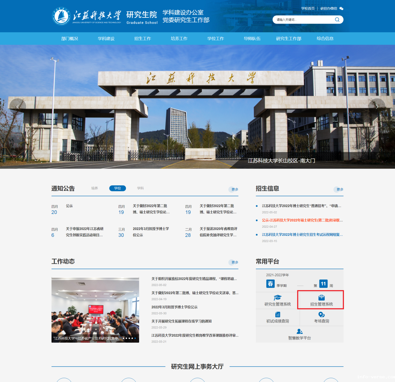 第一种方式:竞技宝登录入口研究生院官方网站(https://yjsb.just.edu.cn/)-常用平台-招生管理系统