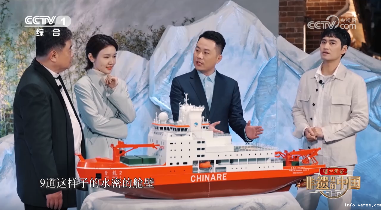 “雪龙2”号是中国第一艘自主建造的极地科学考察破冰船,也是全球第一艘使用船艏、船艉双向破冰技术的极地科考破冰船,填补了我国在极地科考重大装备领域的空白。“雪龙2”号船长122.5米,宽22.32米,设计排水量13996吨,可以以2-3节的航速,在冰厚1.5米的条件下,连续破冰航行,续航力为2万海里,具备全球航行能力,能满足无限航区要求。2019年10月15日,“雪龙2”号与“雪龙”号一起“双龙探极”,开启了中国极地考察新格局。2023年9月5日,“雪龙2”号平稳而有力地抵达北极点,这是中国船舶首次抵达北极点……2025年4月12日,“雪龙2”号圆满完成了我国首次南大洋秋季科考任务。