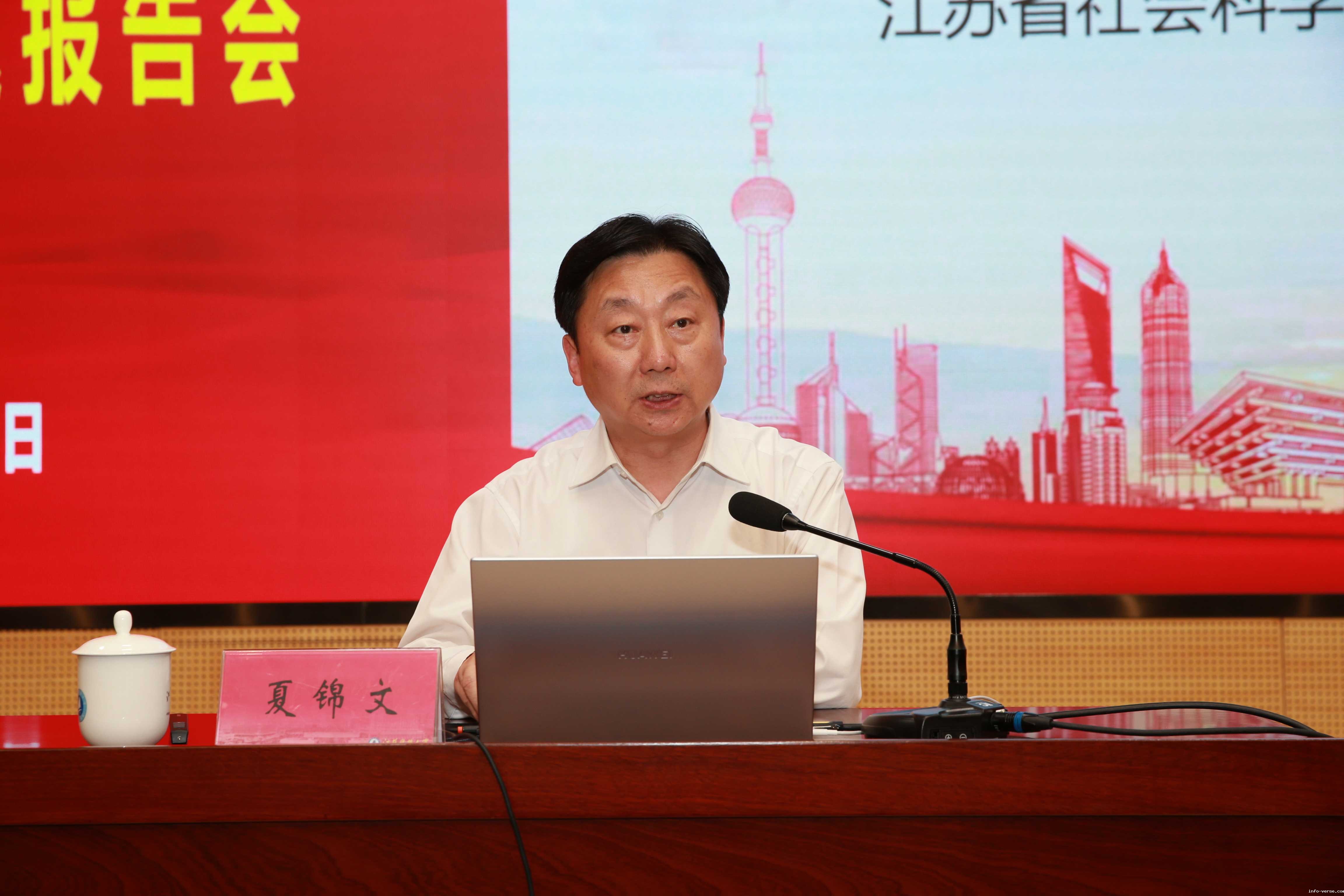 为进一步推动学习贯彻习近平新时代中国特色社会主义思想主题教育走深走实,竞技宝登录入口于6月5日下午,邀请江苏省社科院党委书记、院长夏锦文教授来校作主题教育专题辅导。省委第二十三巡回指导组组长陈小虎,指导组成员、省政法委一级主任科员刘静到会指导。党委书记葛世伦主持报告会。