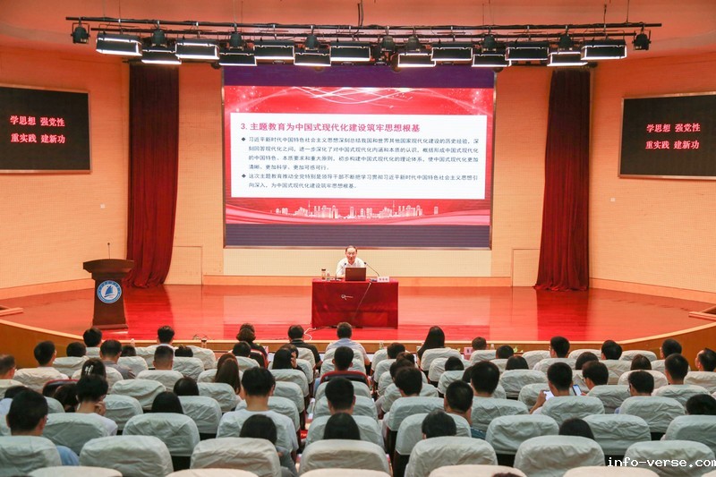 党委常委、副校长任南从中国式现代化与中华民族伟大复兴谈起,全面阐释中国式现代化的科学内涵,围绕为中国式现代化贡献高等教育力量,详细分析了学校一流本科教育行动成效、高等教育发展趋势、人才培养质量再提升等现状,提出高等教育应坚持与祖国共进与时代同行、坚持全面提升人才自主培养质量、坚持构建自主知识体系、坚持涵育“经师”和“人师”的统一、坚持加快数字化建设、坚持面向世界融通中外、坚持党的领导和加强党的建设等。她强调,要加强高校政治能力建设的思考,要以政治建设为统领,不断提高“政治三力”,做思想上的清醒人;要牢牢把握“政治三力”的精神要义,做政治上的明白人;要坚持知行合一,提高政治判断力、领悟力和执行力。以奋进的姿态,锚定“为中国式现代化贡献高等教育力量”的奋斗目标,紧盯学校建设任务要求,加快推进学校蝶变跃升、跨越发展。