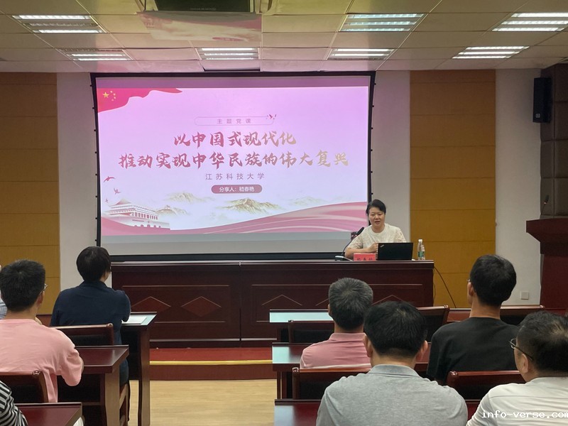 党委副书记汤建以《深刻领会中国式现代化内涵,加强高水平大学优秀文化建设》为题,深入阐释“中国式现代化”的内涵及重大意义,并以习近平总书记对江苏现代化建设的要求和嘱托为指引,系统阐述了全面推进中国式现代化的江苏新实践。他指出,强国必先强教,中国式现代化需要教育现代化的支撑。江苏是经济大省、教育大省,江苏的教育现代化建设在全国“一盘棋”中具有重要典型意义。汤建聚焦江科大高水平大学优秀文化建设,从学校特色鲜明的育人传统、育人工作存在的不足、“兴船报国”文化育人的实践探索及其形成的特色育人成果等方面详细阐述了中国式现代化江苏新实践视阈下的江科大思考。他表示,学校将持续开展“船魂”精神传承创新工程;启动校史文脉传承工程;持续推进深蓝课程群建设;深入打造船海特色的科技文化系列活动。
