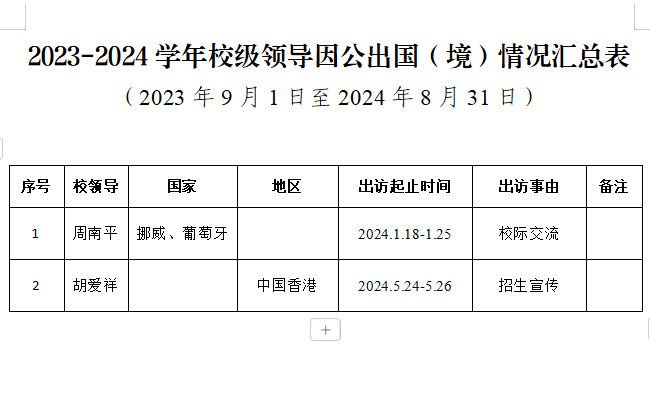 2023-2024学年校级领导因公出国(境)情况汇总表